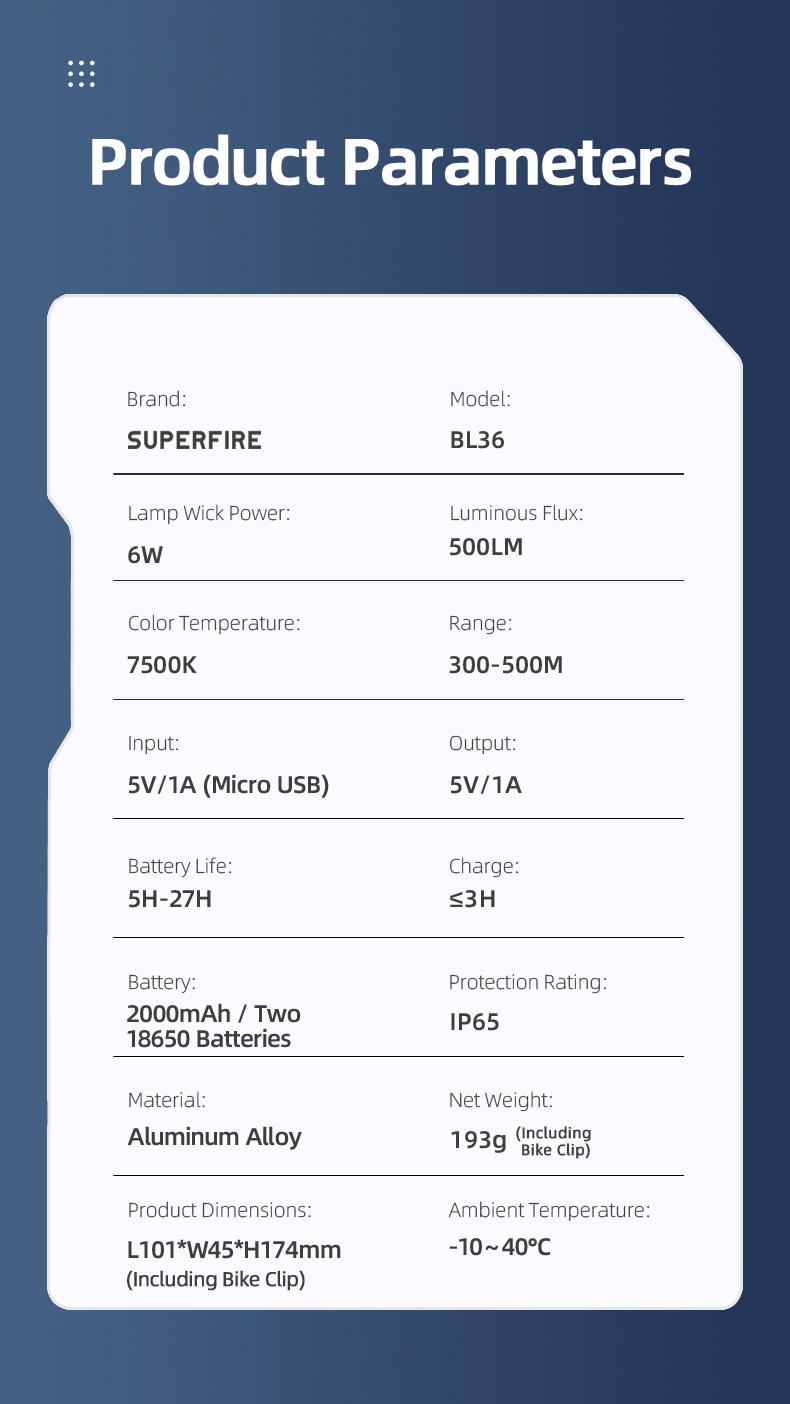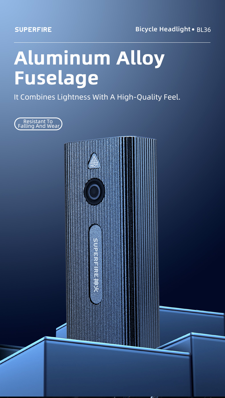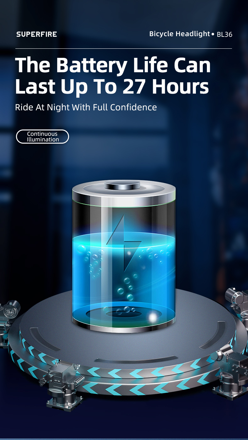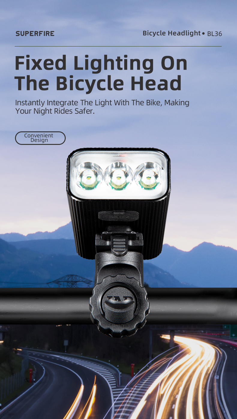BL36 là đèn Trước Xe Đạp Độ sáng cao với 500 Lumens. Nó có Pin Lithium 4000 mAh tích hợp, có thể cung cấp thời lượng pin là 5 giờ trong điều kiện độ sáng cao nhất. Phạm vi tối đa của nó có thể đạt tới 500 mét. Với mức bảo vệ IP65, nó có thể dễ dàng xử lý các môi trường khắc nghiệt khác nhau. Do đó, đây là sản phẩm phù hợp cho việc đạp xe đường dài.